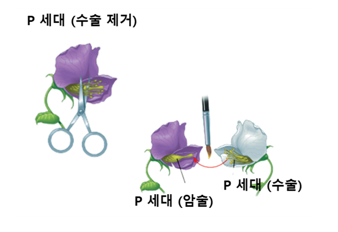 완두콩은 세대가 짧고 대립 형질(줄기가 긴 가 짧은 가, 둥글거나 주름지거나)이 뚜렷했으니까요.