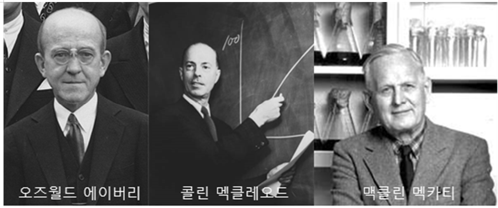 견고했던 ‘단백질 유전물질설’의 벽에 처음으로 금을 낸 것은 록펠러 연구소의 오즈월드 에이버리, 콜린 멕클레오드, 맥클린 멕카티였습니다.
