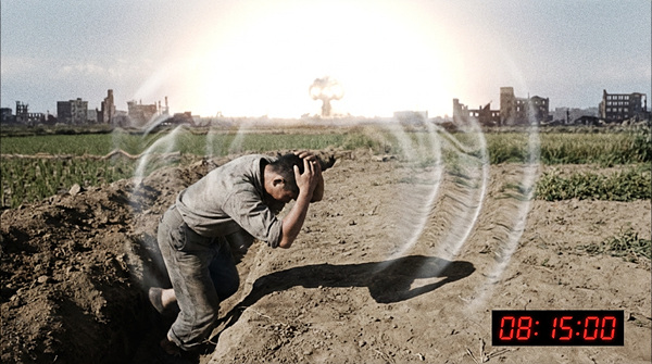 야마구치: "부장님, 어제 히로시마가 폭탄 한 발에 도시 전체가 날아갔습니다."
