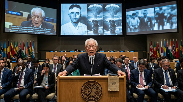 생전 처음 여권을 만들어서 뉴욕 UN 본부까지 날아가 "핵무기는 절대 다시 쓰여선 안 된다"고 호소했지.