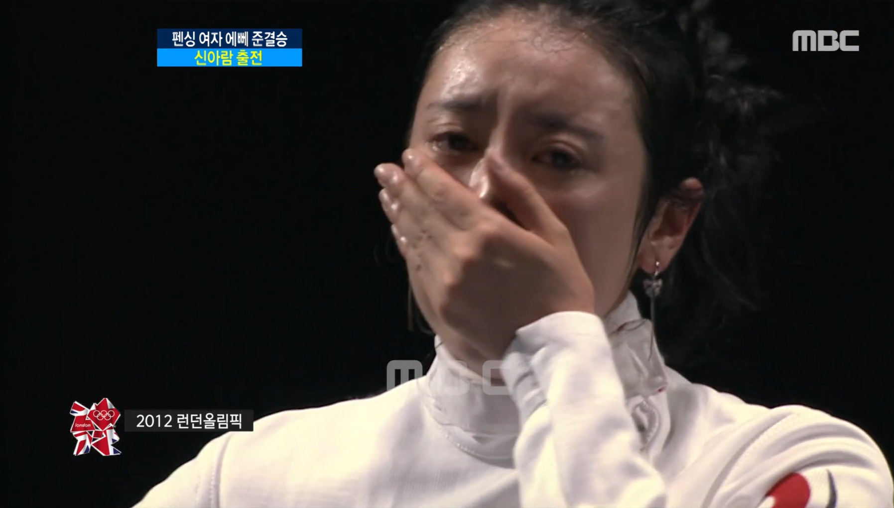 신아람 선수가 피스트 위에서 한 시간 동안 눈물 흘린 게 레전드.